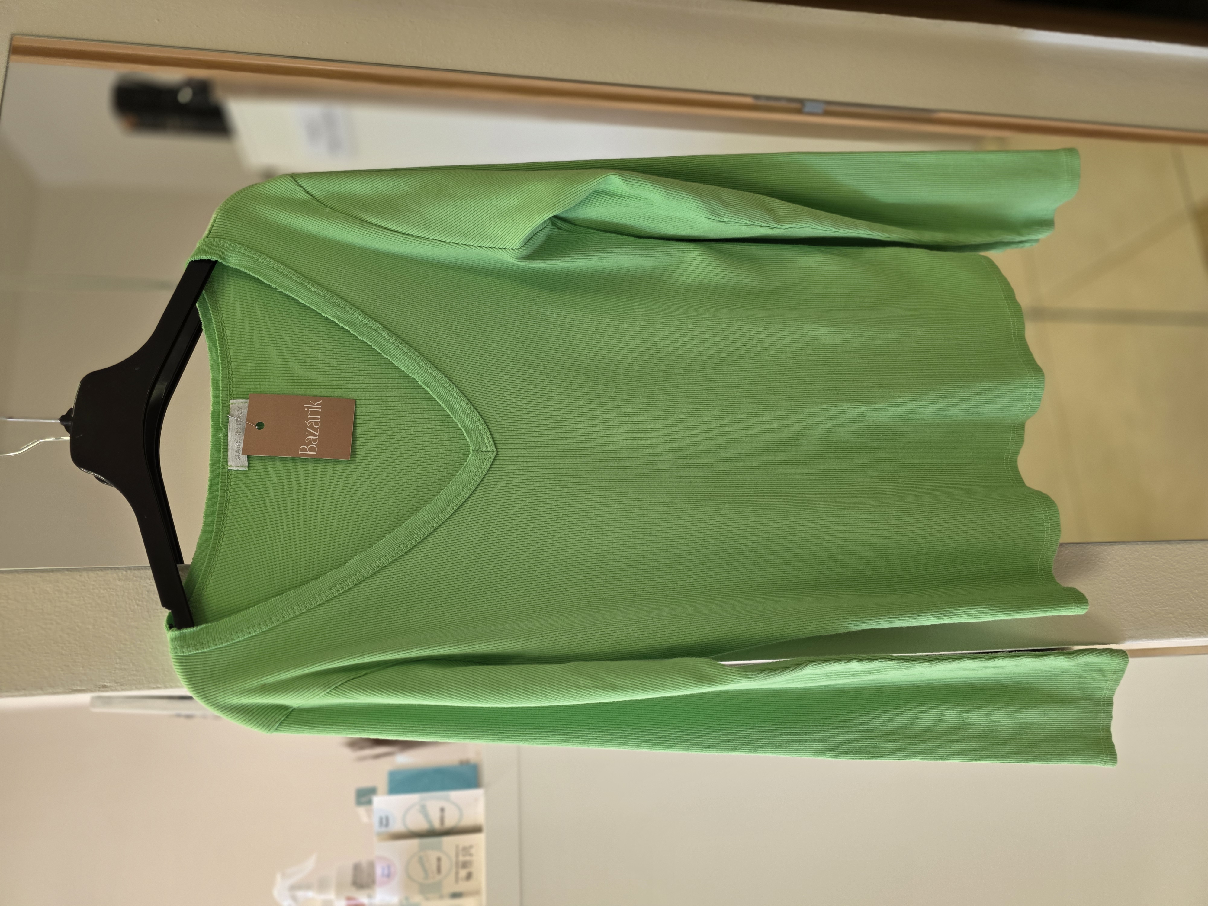 Popis: Basic, no zároveň výrazný – tento sviežo zelený top s dlhým rukávom je presne ten kúsok, ktorý ľahko skombinuješ s rifľami, sukňou či elegantnými nohavicami. Výstrih do V krásne predĺži krk a pôsobí jemne žensky. Ľahký, pružný materiál zaručí pohodlie počas celého dňa a farba dodá aj rifliam šmrnc.