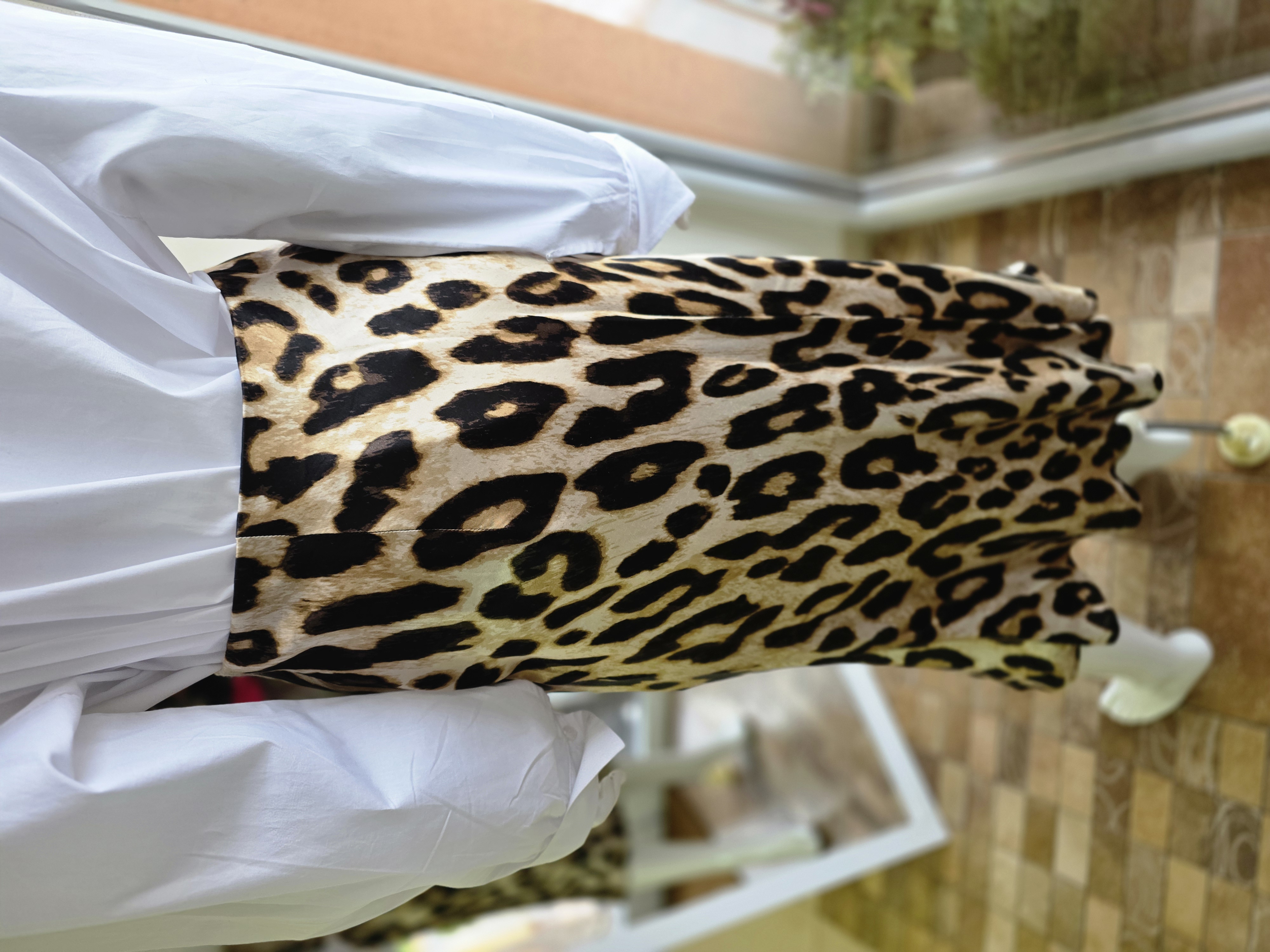 Popis: Saténová suknica na gumu s leopardím vzorom.