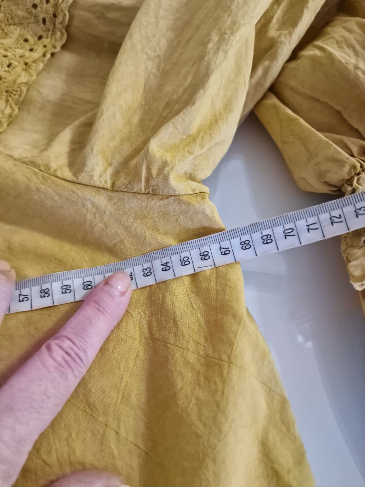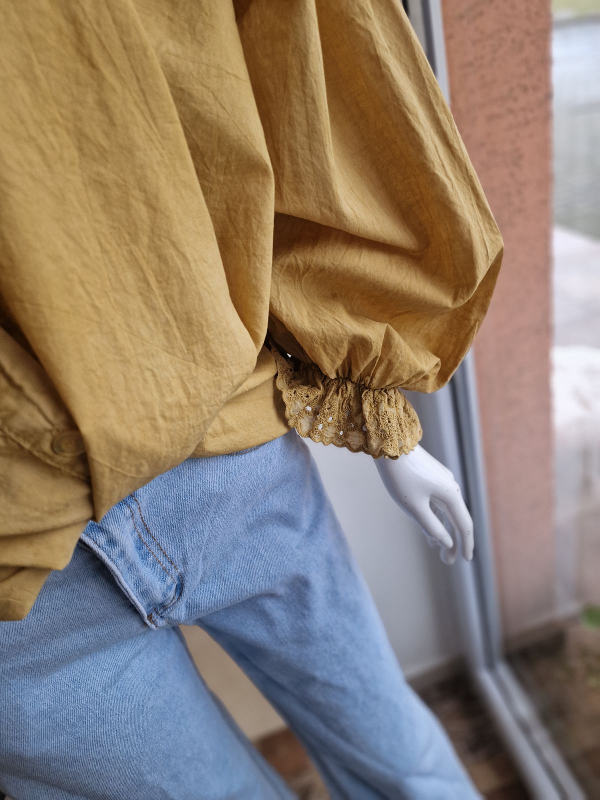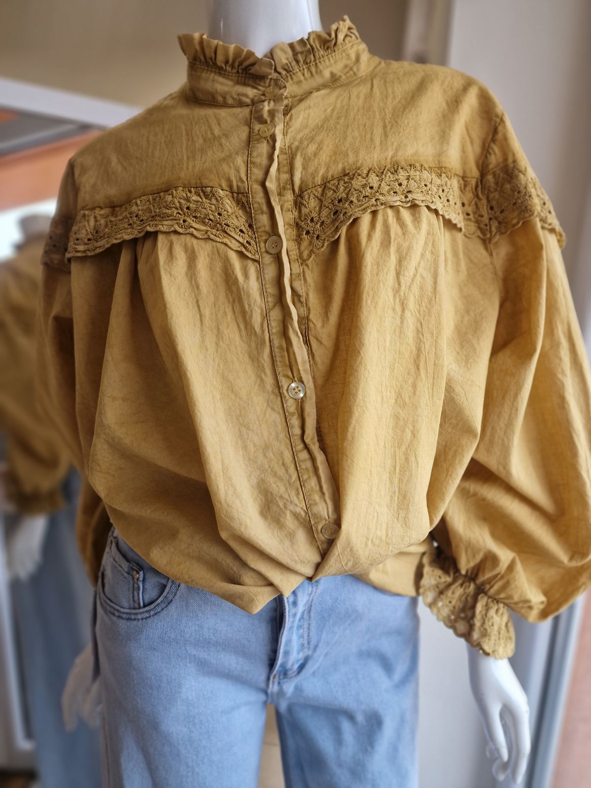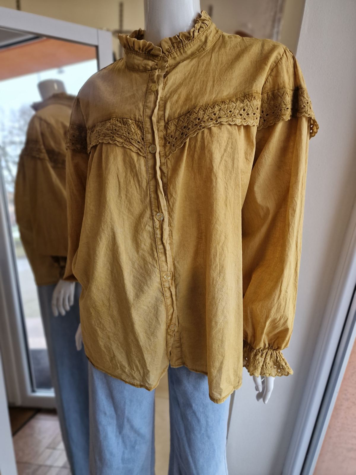 Horčicová košeľa s čipkou