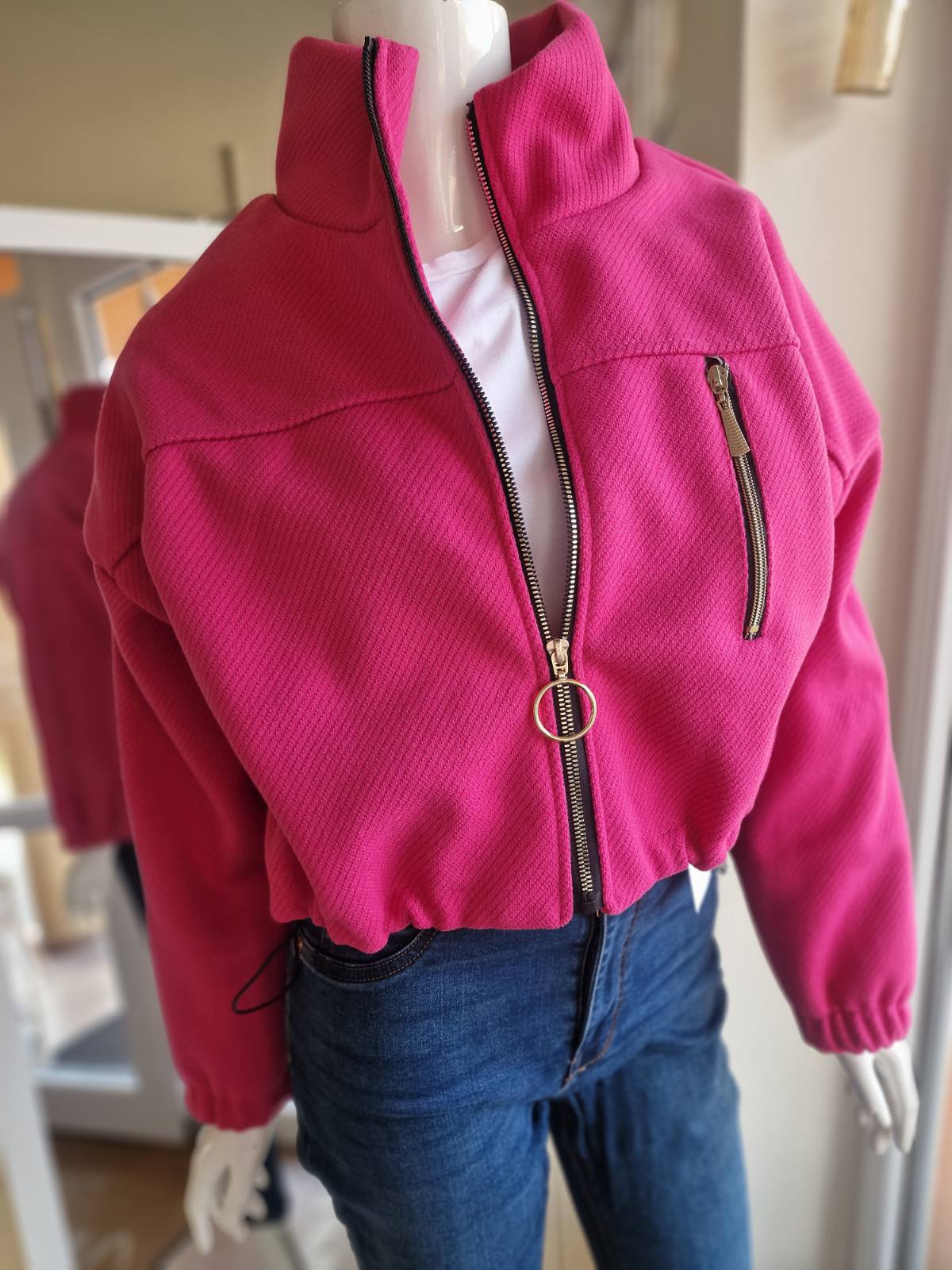 Popis: ružová, výrazná a extravagantná. Ak od módy čakáš viac. Ak je móda tvoja výpoveď o tom ako vnímaš seba. Svoj svet. Ani neváhaj. Pridaj široké rifle. Zapínanie na zips. Jarný mood zapnutý.