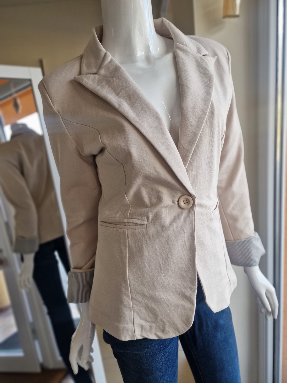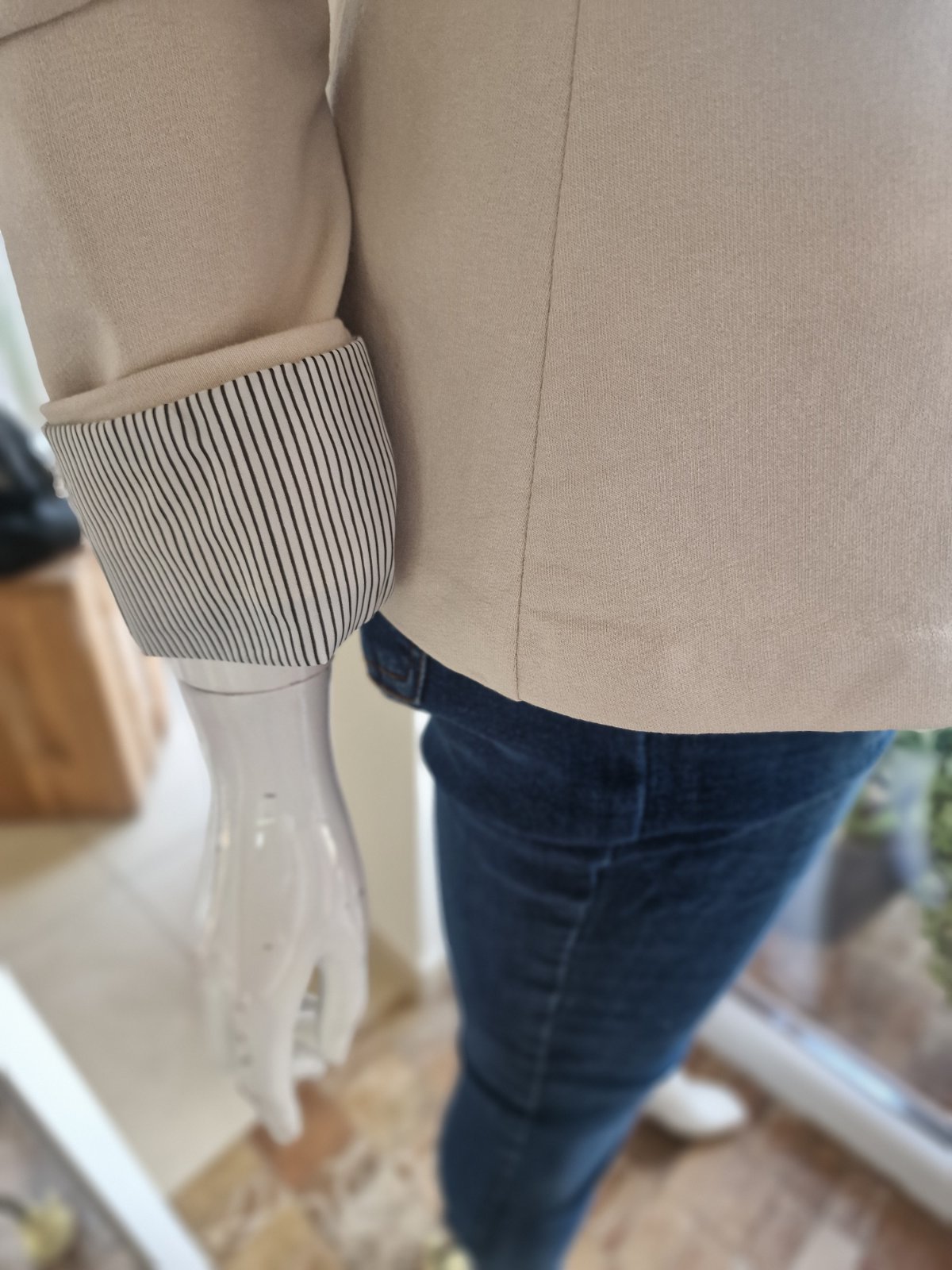Popis: Toto sačko budeš nosiť do zodratia. Rukávy po vyhrnutí zahrajú pásikavým akcentom. Vďaka farbe ho skvele dopasuješ k rifliam, plisovanej sukni a hneď sa skamaráti aj s teniskami.