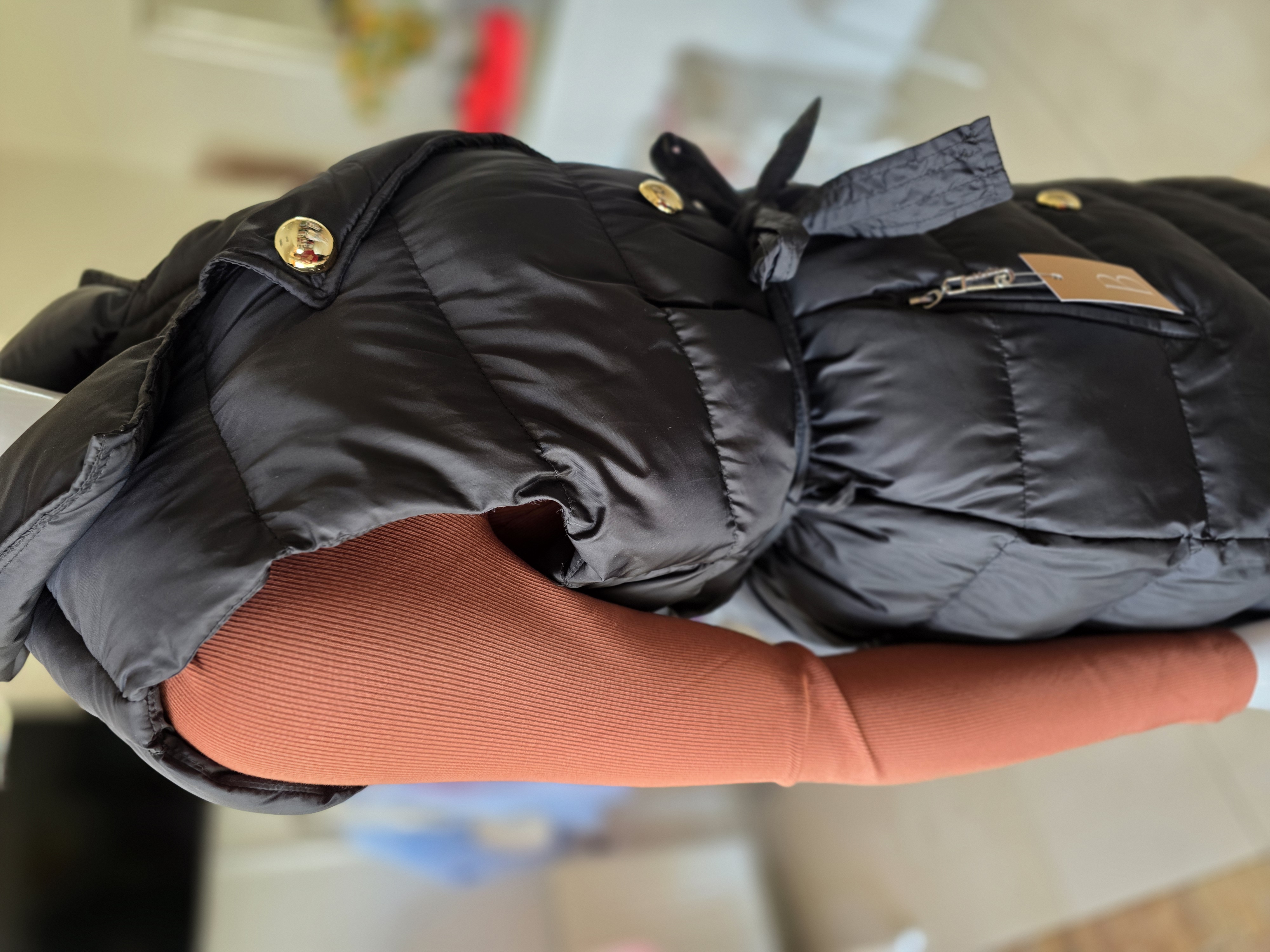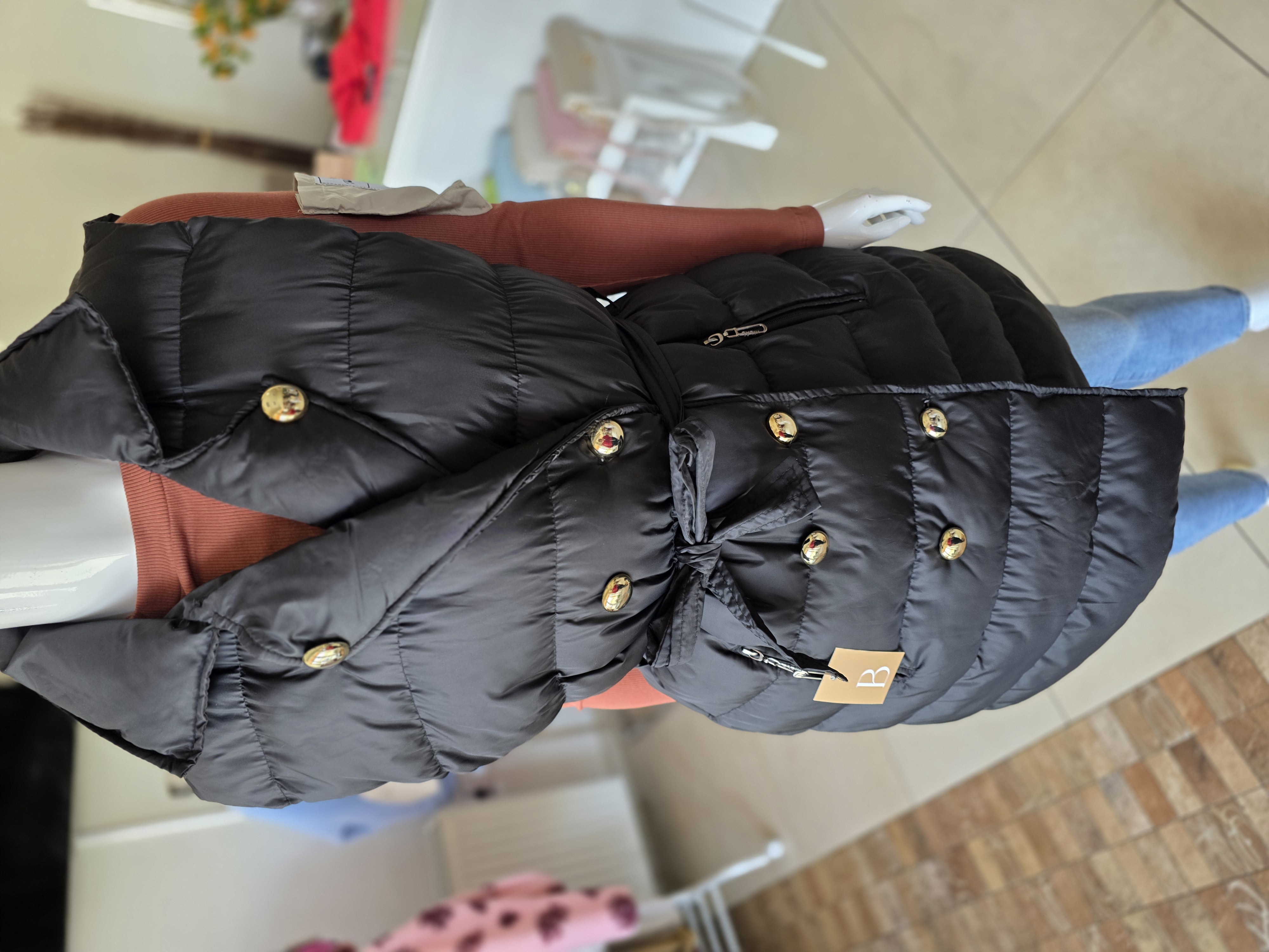 Popis: Štýlová čierna vestička so zlatými gombíkmi. Praktické zapínanie na gombíčky.